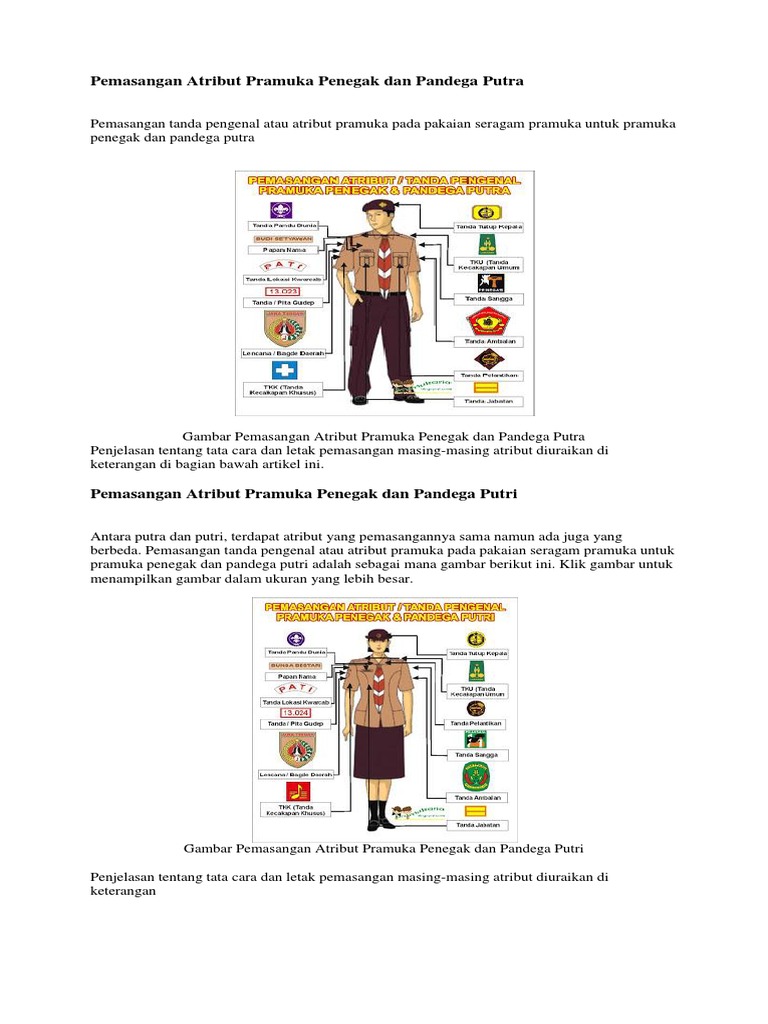 Tutup kepala, baik topi , ataupun baret coklat. Yang mana ada beberapa atribut kelengkapan seragam pramuka sebagai berikut : Kunci jawaban tema 8 kelas 3 sd subtema 2 pembelajaran 1 halaman 55, 56, 57 dan 59. Sekian artikel " perlengkapan, atribut seragam putri putra pramuka penggalang " saya buat terimakasih. Penempatan, warna dan bentuknya sama dengan putra. Jul 28, 2021 · seragam pramuka sekolah dasar, pada pemakaiannya harus mulai di wajibkan untuk memakai seragam pramuka lengkap sejak dini. Subtema 1 pada buku tematik ini berjudul aku anak mandiri. More images for kelengkapan seragam pramuka » Seragam pramuka lengkap yang terdiri dari atasan dan bawahan berupa celana kempol berwarna coklat tua, hasduk atau stangan leher, kabaret. Selain baju dan bawahan (celana atau rok), seragam pramuka memiliki beberapa atribut atau kelengkapan, antara lain: Apr 06, 2016 · pramuka golongan penggalang atau golongan sekolah menengah pertama atau smp ini memilik atribut yang tidak jauh berbeda dengan golongan siaga, diantaranya adalah: Jan 15, 2020 · seragam pramuka siaga merupakan jenis seragam pramuka untuk seragam harian. Seragam pramuka tersebut memiliki beberapa kelengkapan (atribut) yang lain, diantaranya tanda tutup kepala, lambang pandu dunia, papan nama, tanda lokasi, badge daerah, pita nomor, tkk, tanda pelantikan, tanda jabatan, tanda barung/regu/sangga, setangan leher dan tanda pelantikan.