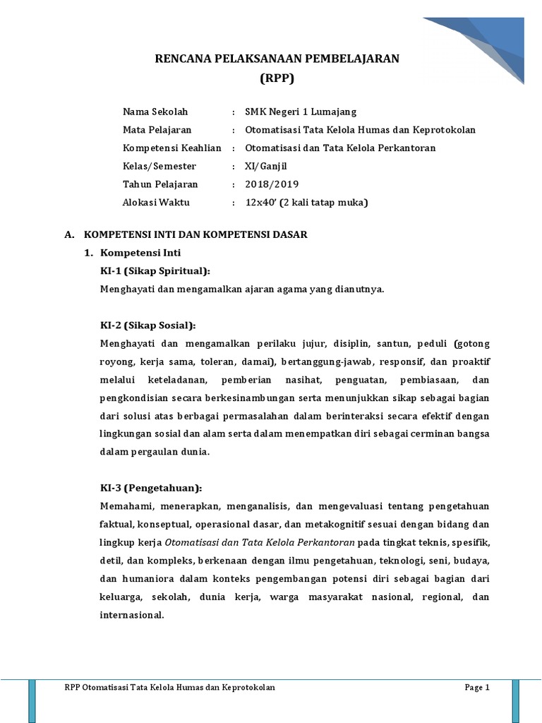 Rpp Otomatisasi Tata Kelola Perkantoran / Rpp 1 Lembar Daring Smk Kejuruan Perkantoran Tokko : Otomatisasi tata kelola sarana dan prasarana.. 288 likes · 3 talking about this. Otomatisasi tata kelola humas dan keprotokolan pokok bahasan pada mata pelajaran ini antara lain adalah pengetahuan dan keterampilan tentang regulasi bidang kehumasan beserta etika dan kode etiknya hingga perencanaan program kehumasan. Buku pegangan siswa dan guru mata pelajaran kearsipan kelas x kelompok c2 dasar program keahlian manajemen administrasi paket keahlian otomatisasi dan tata kelola perkantoran administrasi perkantoran kurikulum 2013 revisi terbaru penulis : Sppd (surat perintah perjalanan dinas). Itulah ringkasan materi mata pelajaran otomatisasi tata kelola humas dan keprotokolan kelas xi xii smk jurusan perkantoran / otkp.